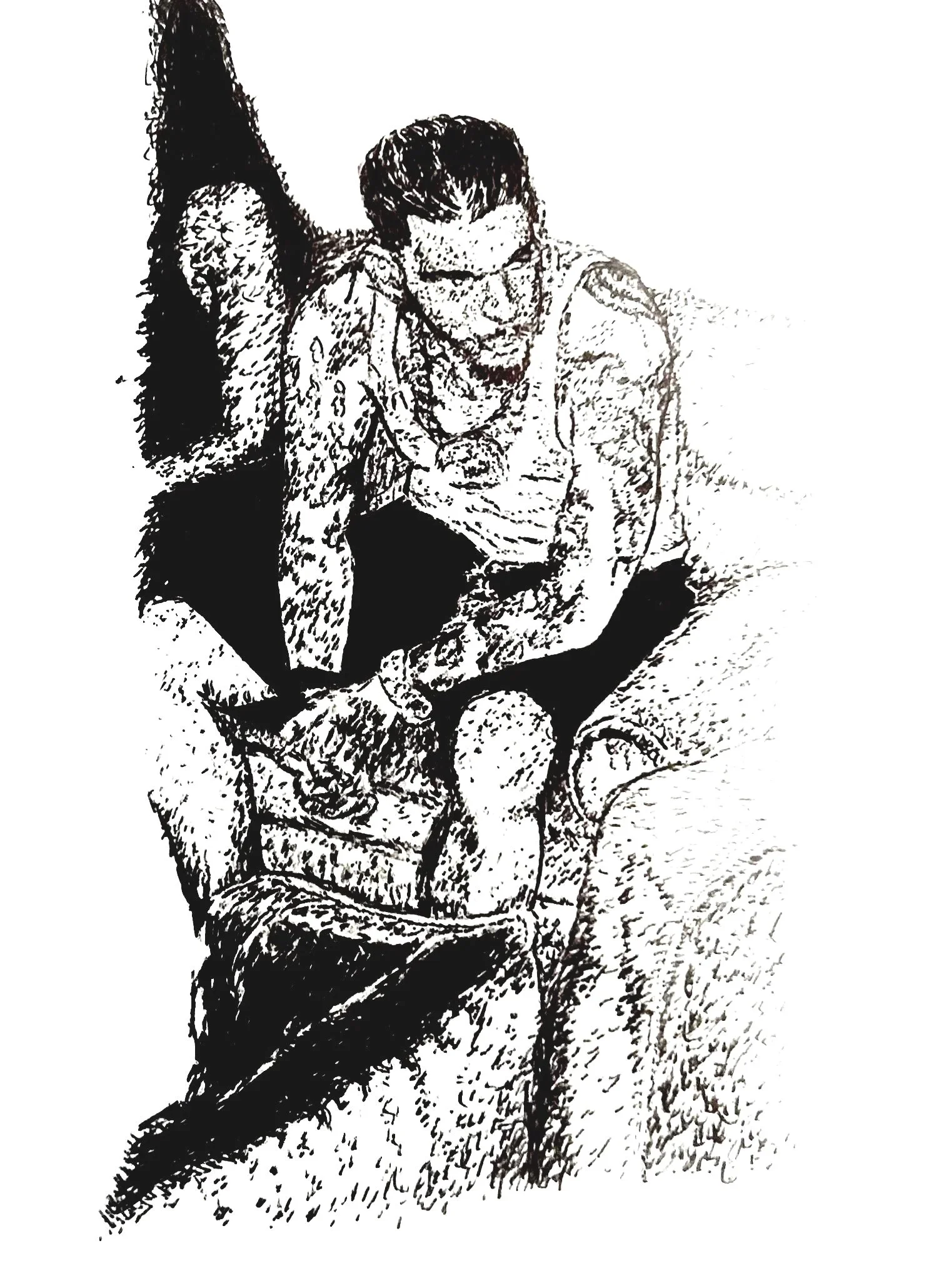 NYA “DOBERMAN” Stipple pen drawing, 2024