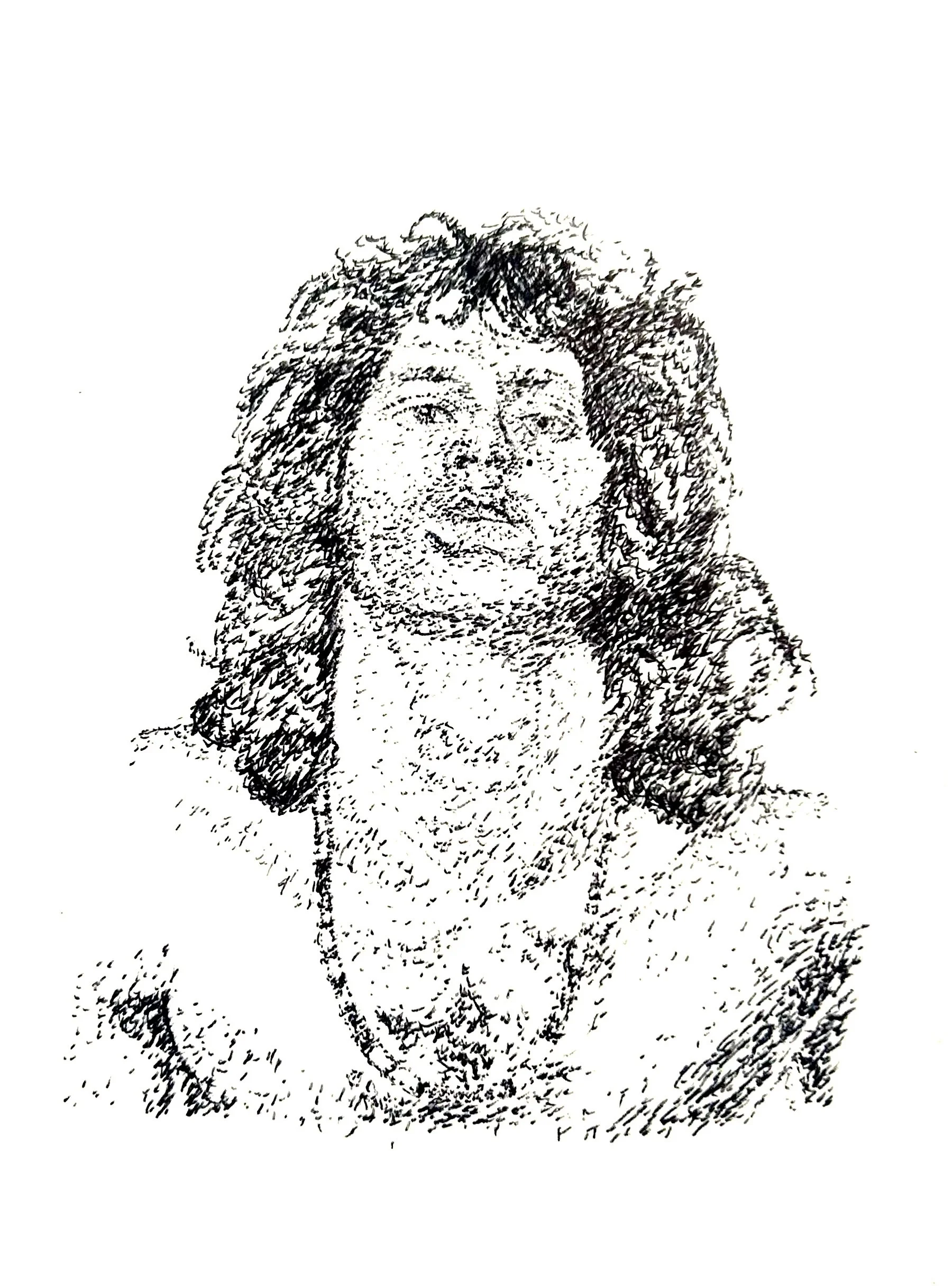 AMY WINEHOUSE Stipple pen drawing, 2024