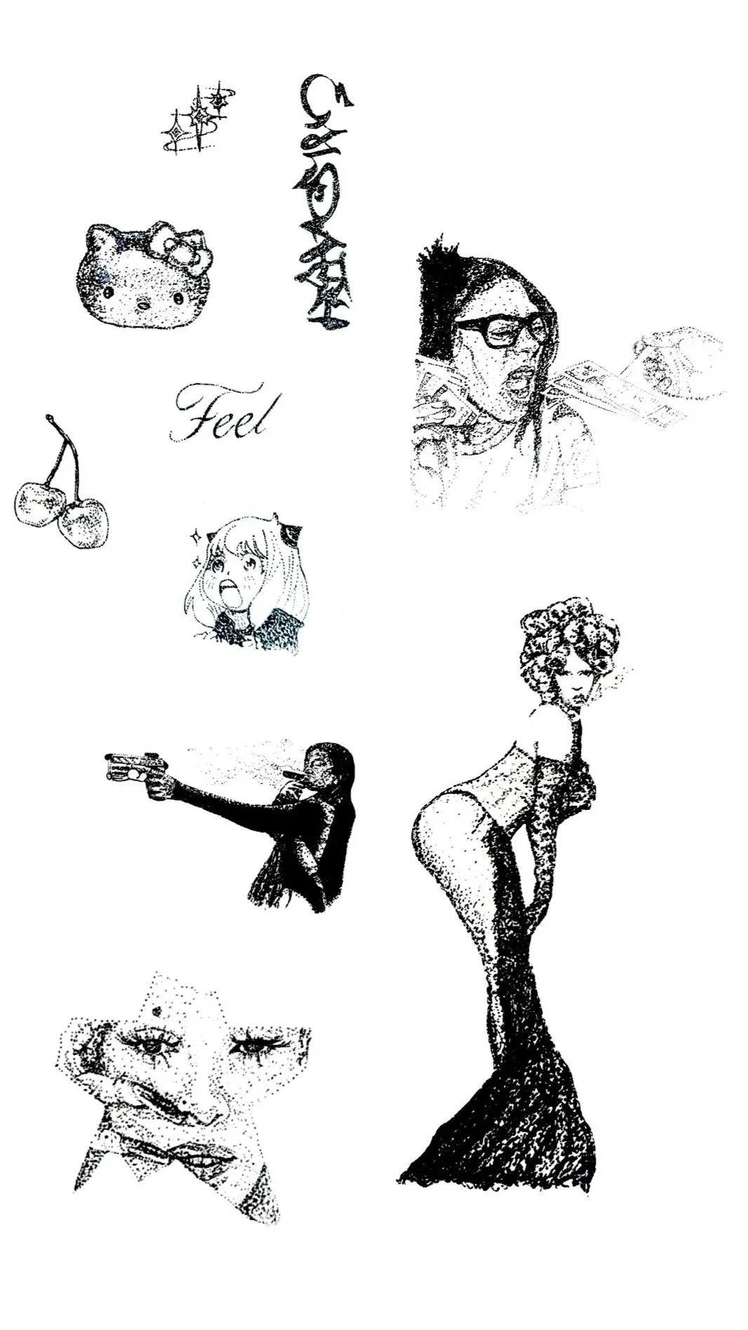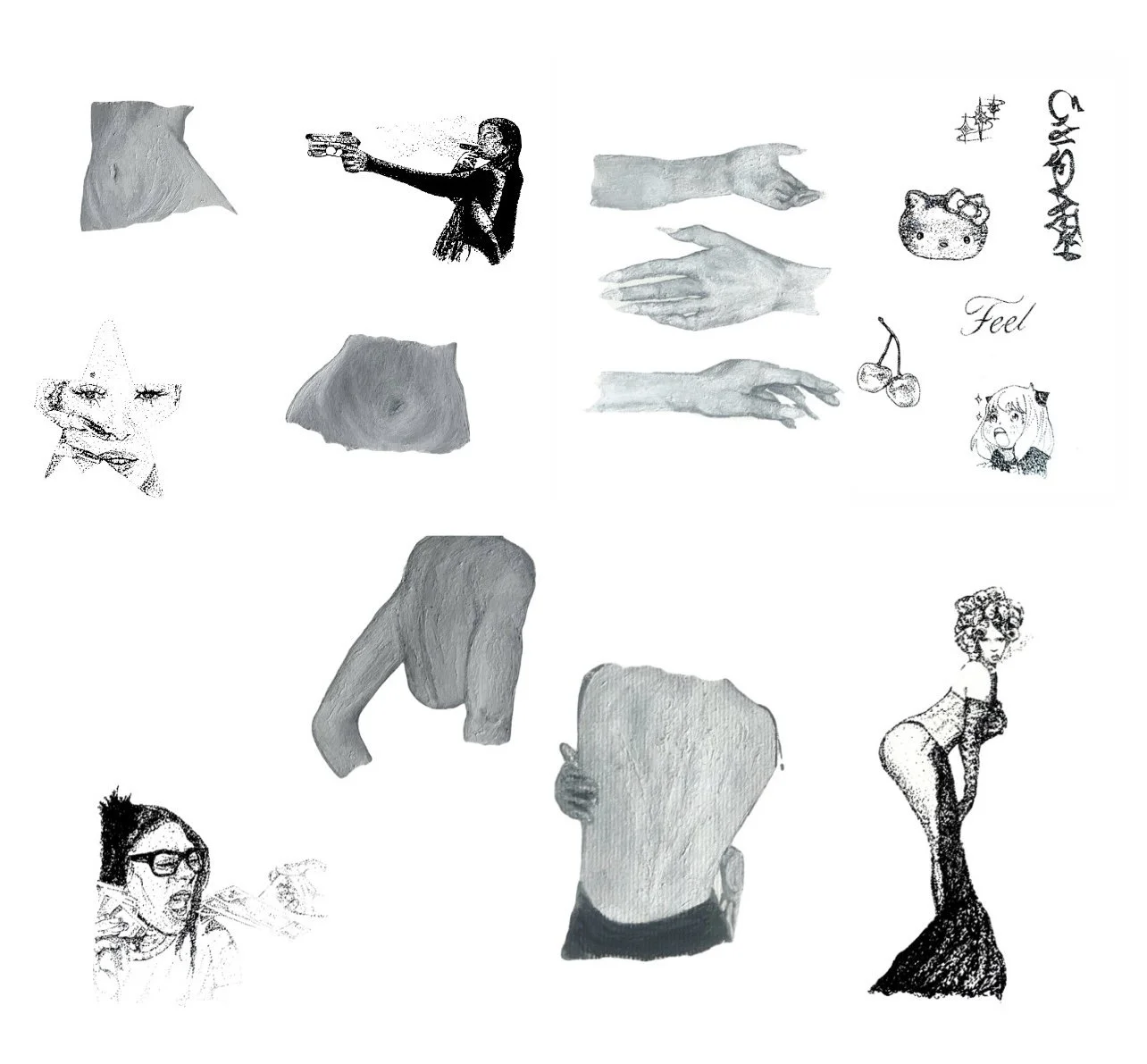 PAPER DOLL TATTOO FLASH Acrylic paint- Bic pen 2025